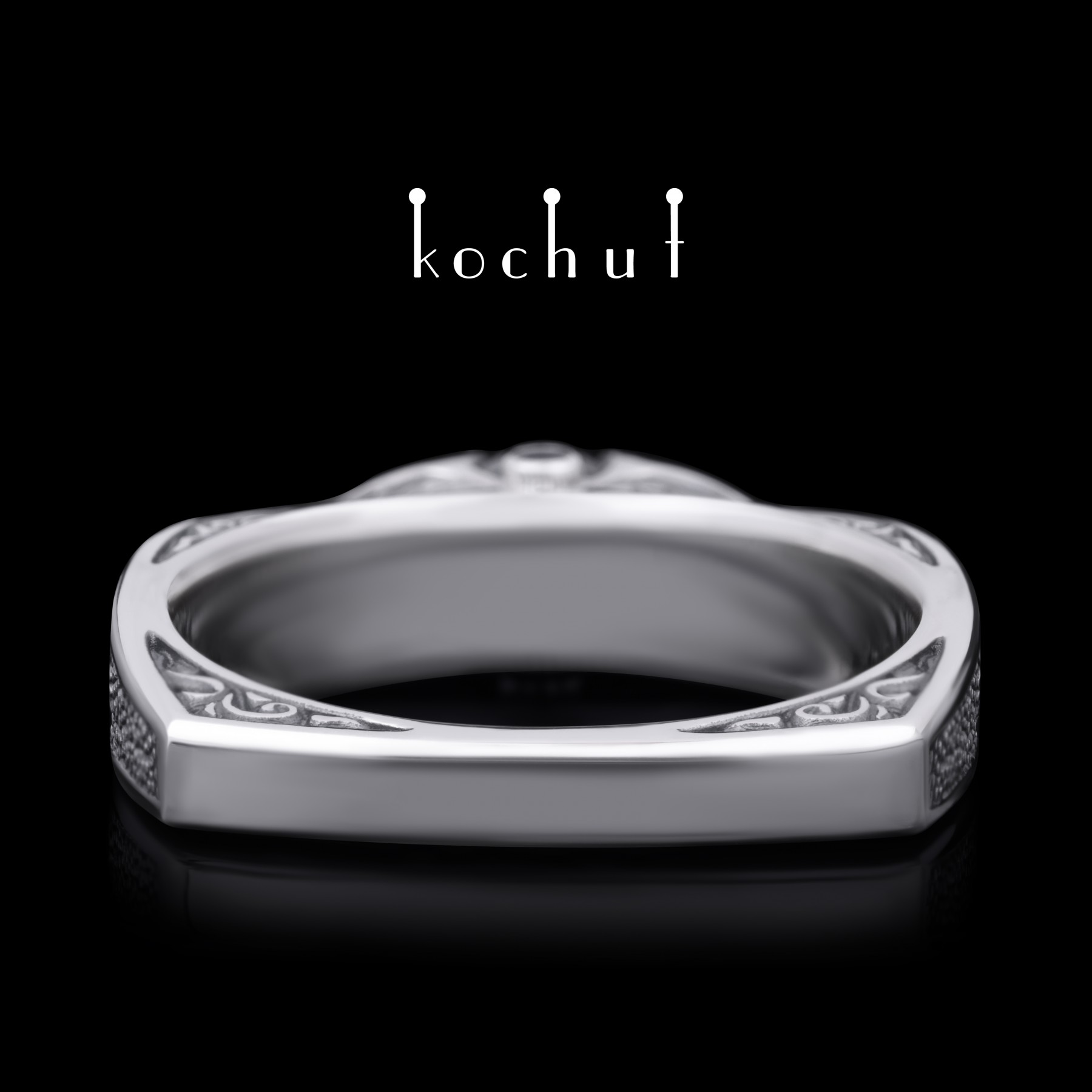 Tato neuvěřitelná krása je ztělesněna i v prstenu ze stejnojmenné kolekce "Versailles". Neobyčejný dekorativní vzor na stříbrném plátně připomíná linie a tvary francouzské architektury.