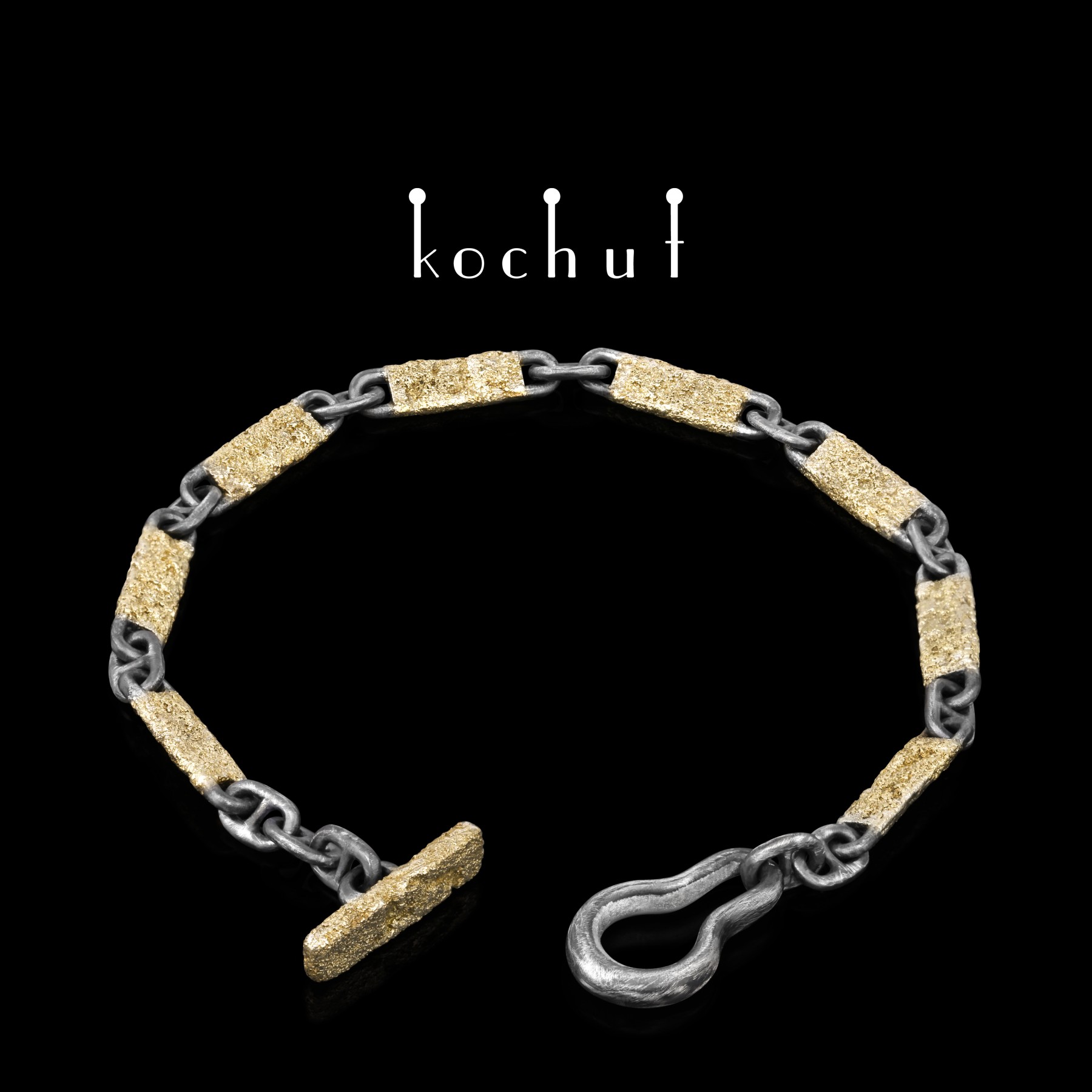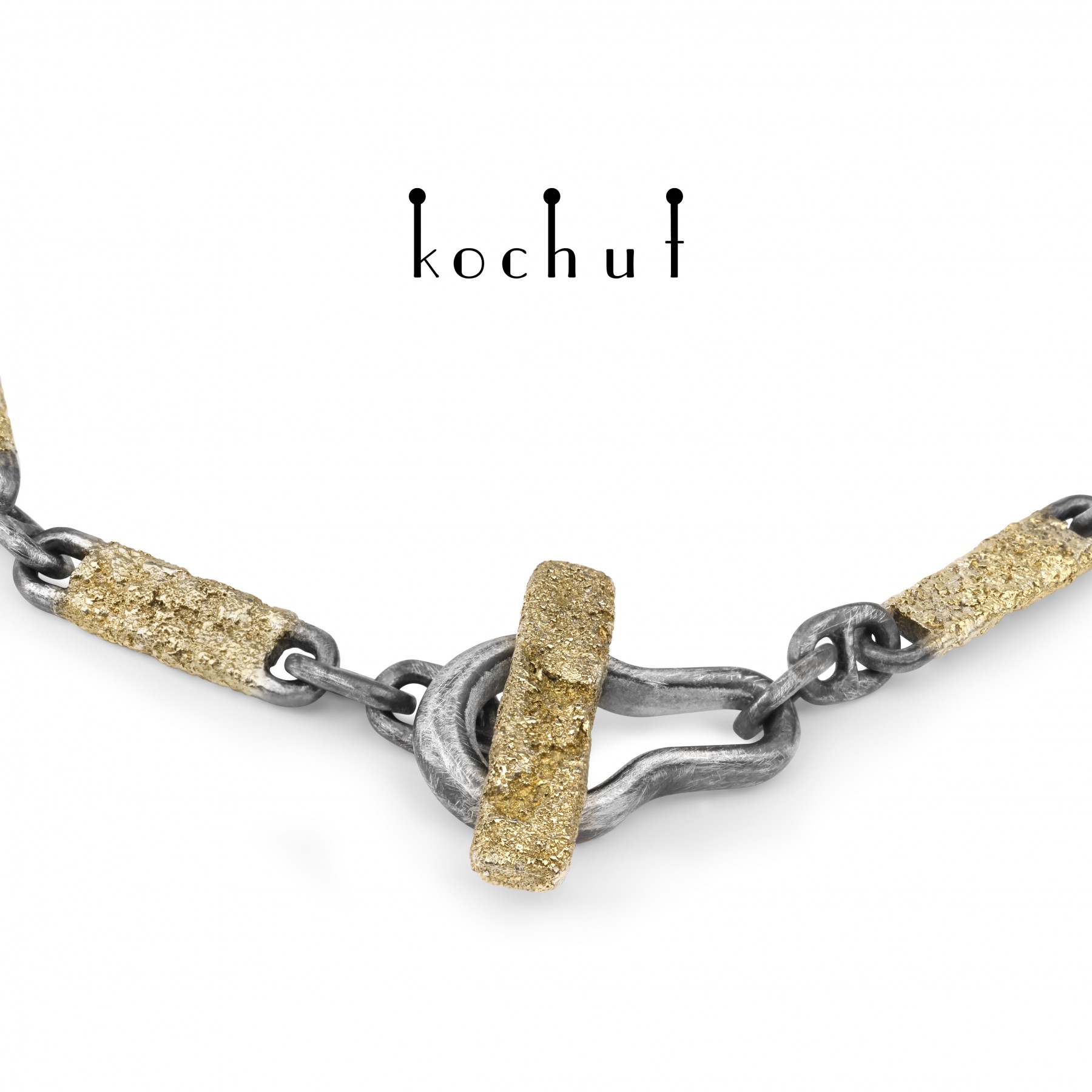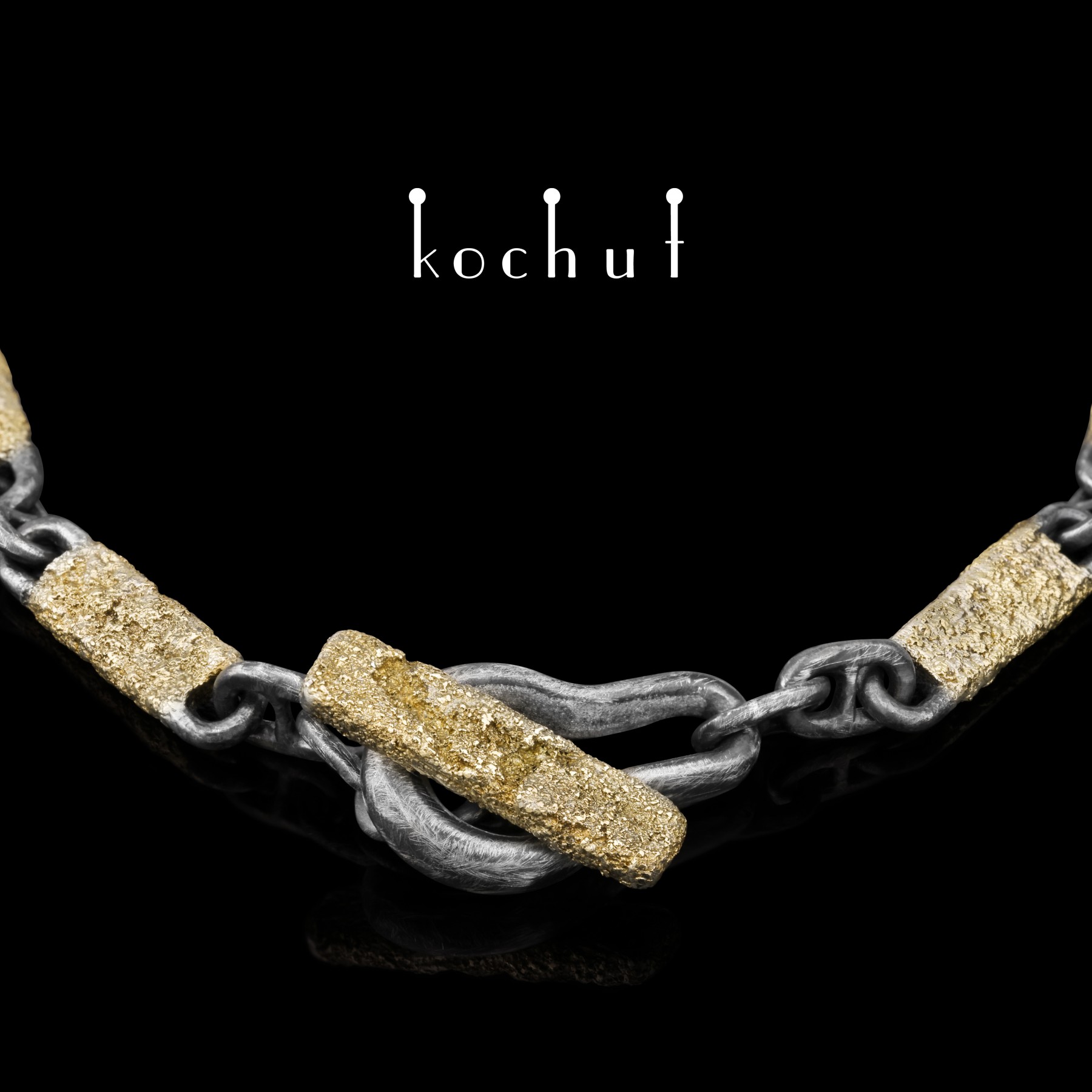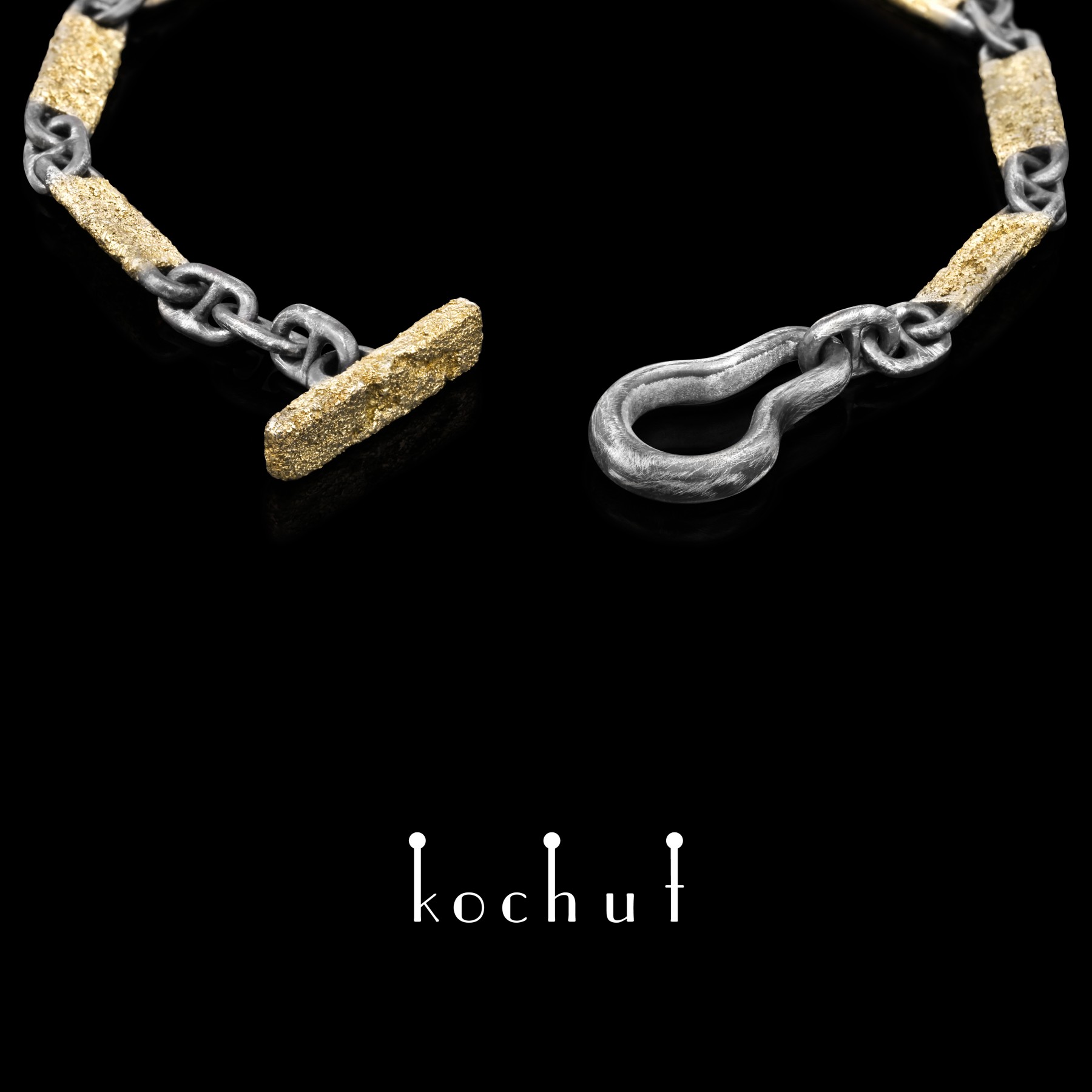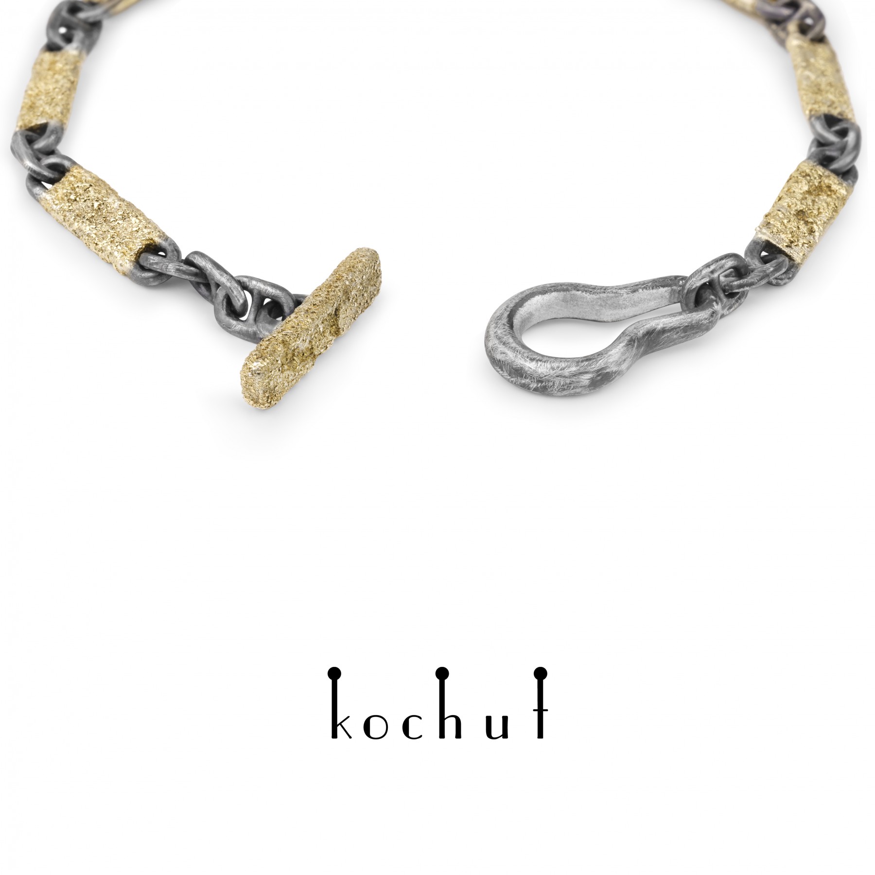 Bracelet «Soul and body» is a single symbol of human perfection, its character, inner world and external image. The basis of the bracelet is made of silver, and on the surface — the author’s welding of yellow gold.