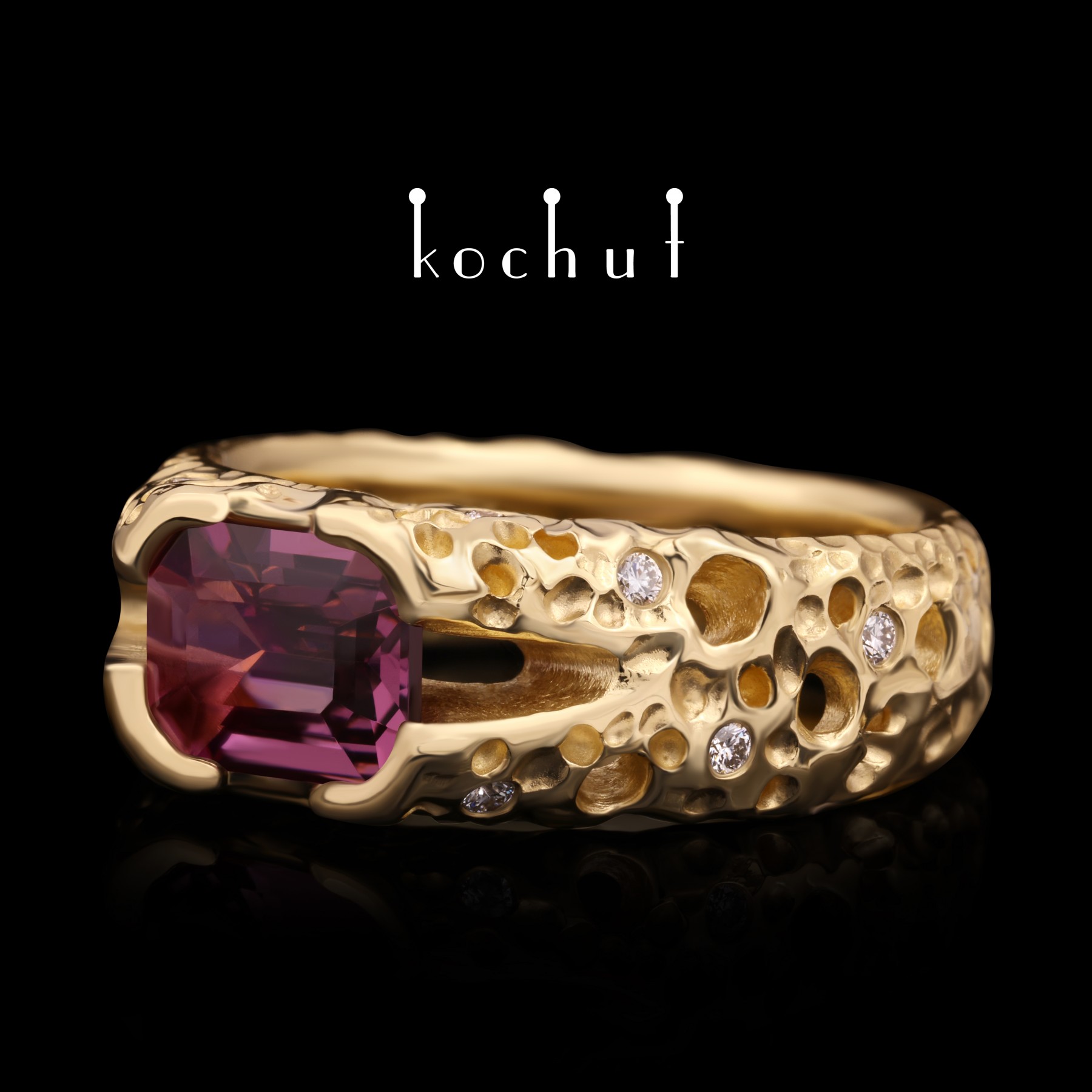 The ‘Eastern Tale’ ring represents a special version of reality. With the warmth of yellow gold, the magic of a pink spinel and a scattering of 12 diamonds, it is so beautiful and attractive that you will want to take this dream home with you.