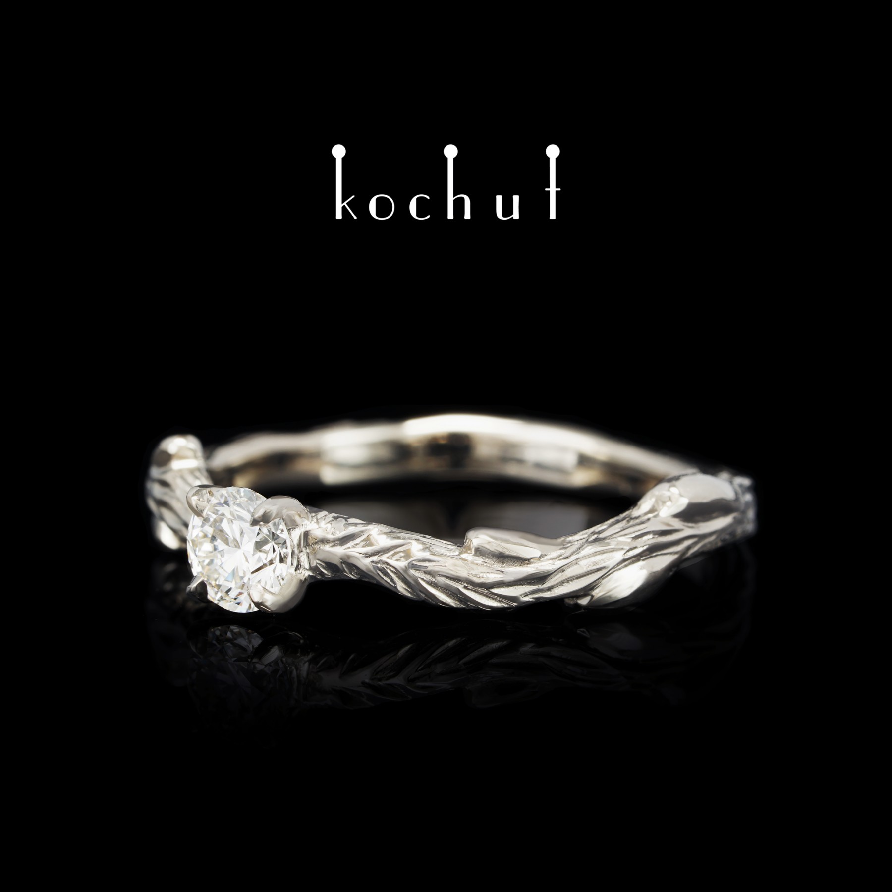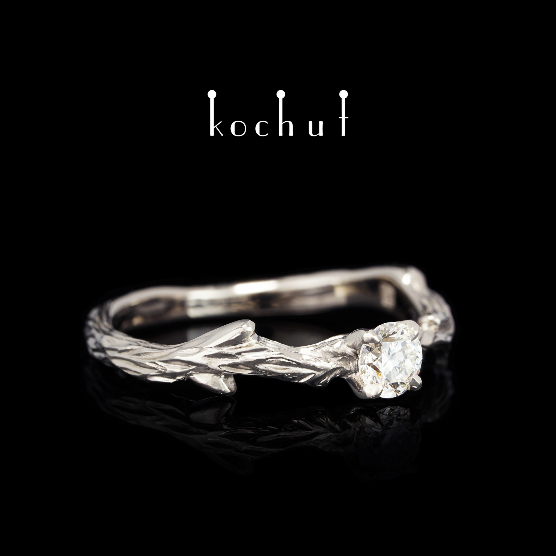 Märtsi oks — pallaadium kihlasõrmus teemantiga