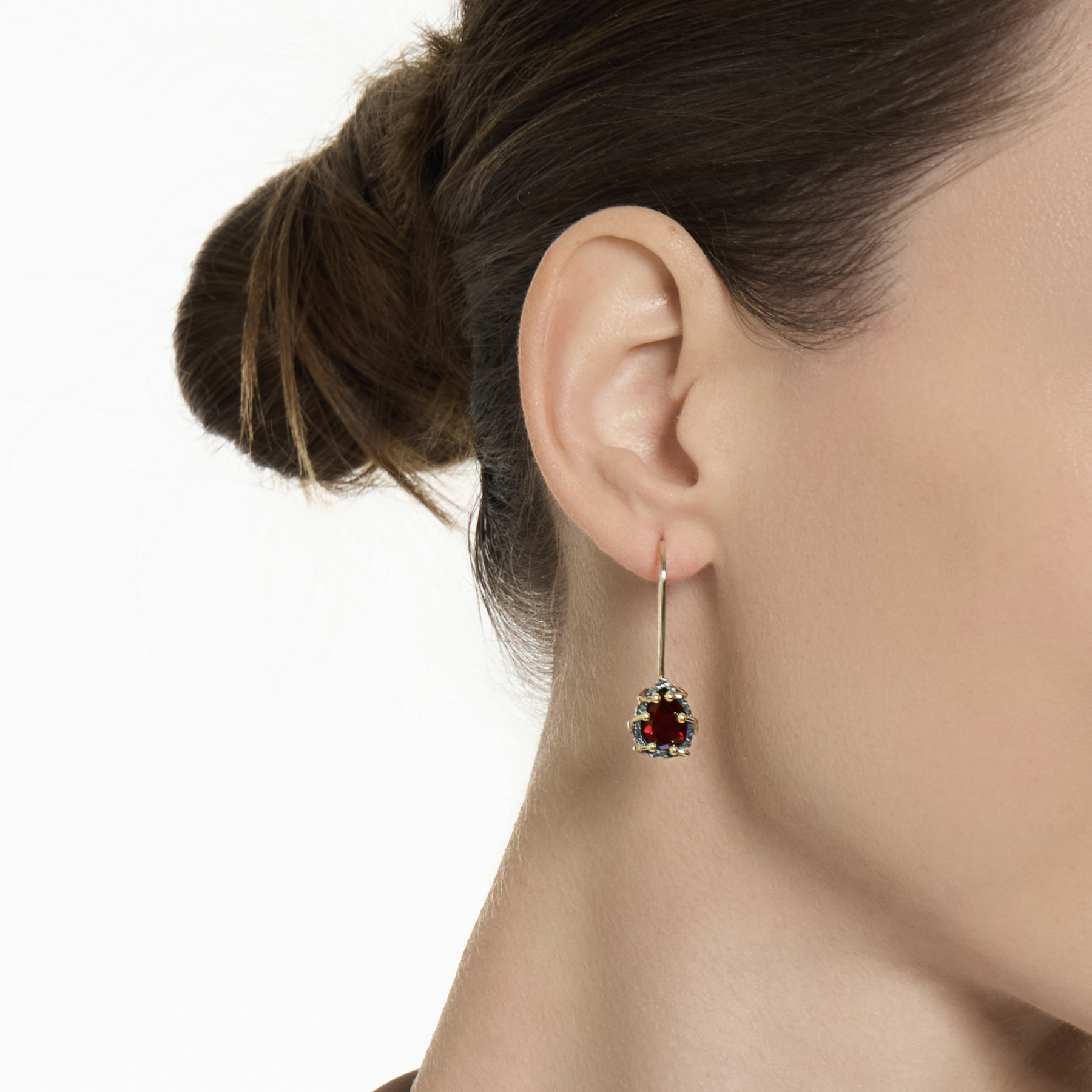 Aurora — earrings made of silver, yellow gold and red garnets