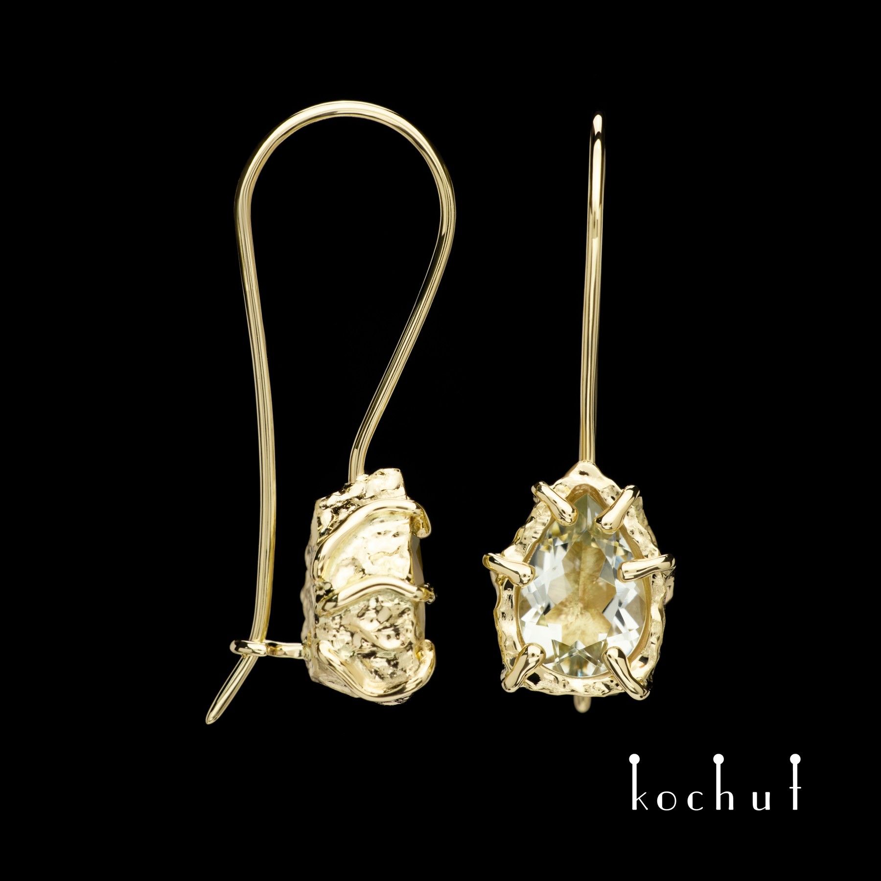 Камінь, який ми вибрали для цих сережок, — незвичайний для світу ювелірного мистецтва. Це зелений аметист, вкрай прозорий, чистий, свіжий, схожий на ранкову росу, яка опадає на квіткові поля.